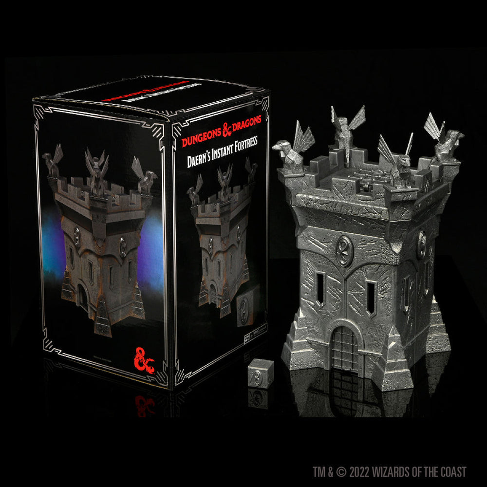 Based on the famous and formidable wondrous magic item, this tower is sized to rest easily on a shelf or at the game table, where it may be employed as more than a sturdy piece of unassailable décor—it may also serve as a dice tower. Also included is the item's magically compact (1-in. cube) form—ideally sized to fit in an adventurer's belt pouch, any player's dice bag, or on a display shelf alongside its "full-sized" counterpart.