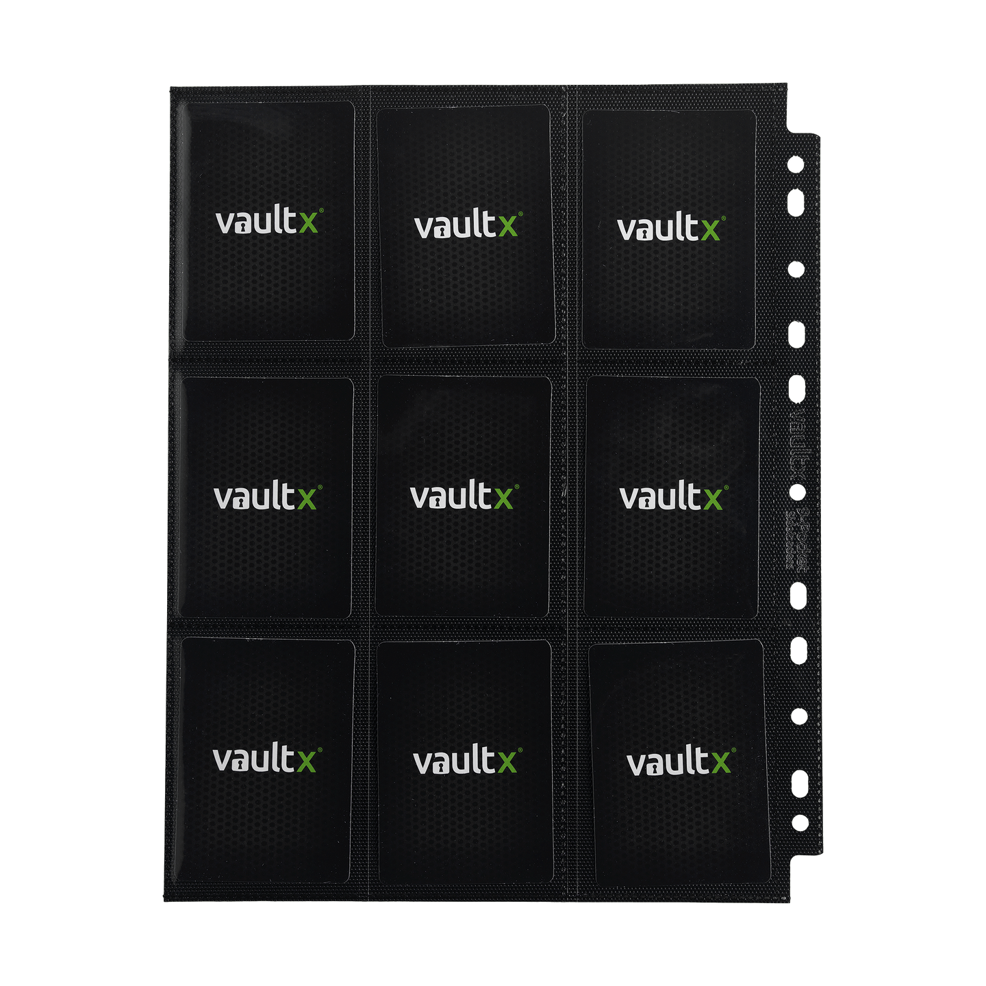 9-Pocket Side Loader Pages: 9 pocket per page, double-sided high quality trading card pages. 50 pages holding 900 cards. Made from archival-safe, acid-free non-PVC material.