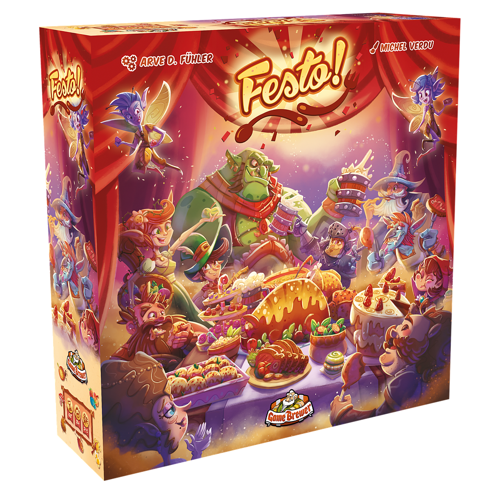 Festo! Is a game for 2 to 5 players that combines worker placement and area control, where players try to gather as many ingredients as they can, but also use the powers of the different races to turn the game to their advantage.